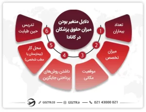 همچنین از آوریل ۲۰۲۲، متوسط حقوق پزشکان در کانادا میتواند از ۸۳٬۳۷۹ دلار در سال تا ۴۱۴٬۳۸۹ دلار در سال متغیر باشد.